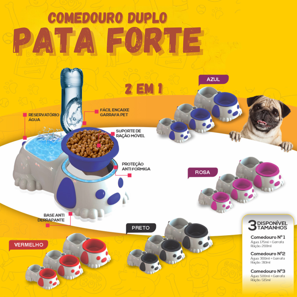 O Comedouro Duplo Pata Forte foi feito para manter a comida protegida.